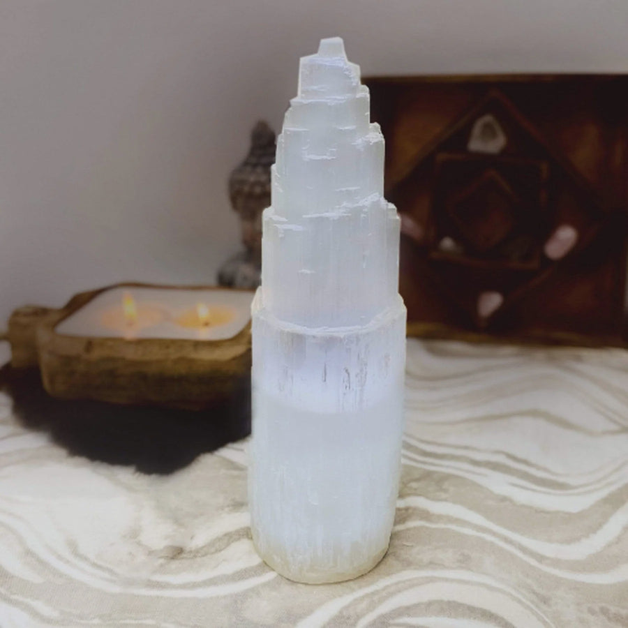 Selenite Corkscrew Point Massage Wand 7-8" Tall