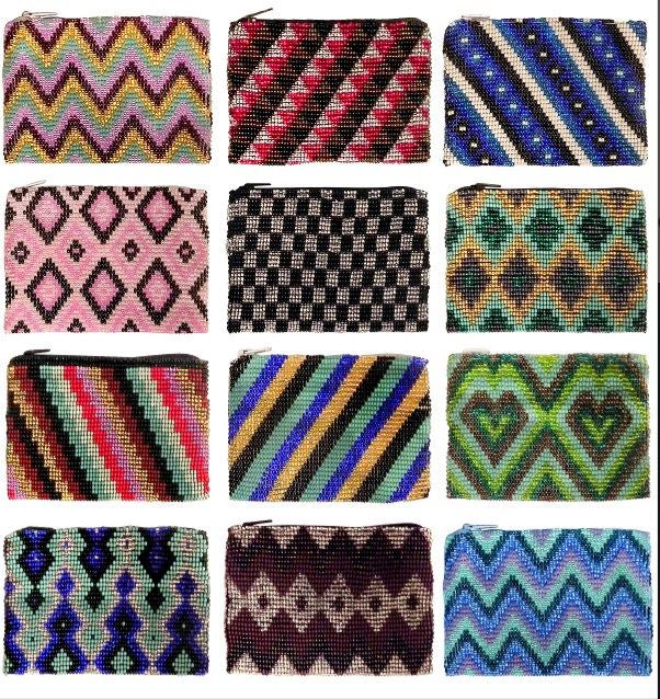 Beaded Geometric Pattern Seed Bead Coin Purse