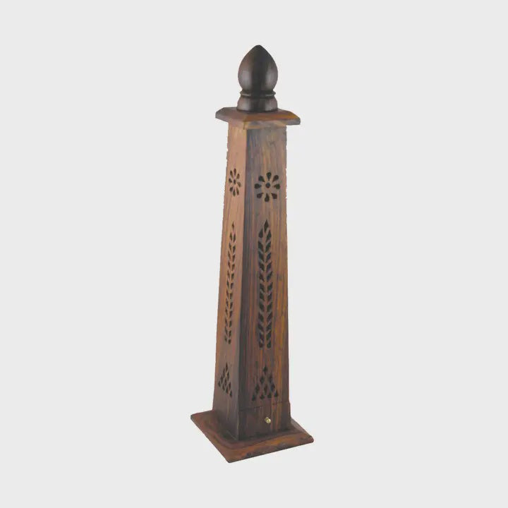 Hand Carved Wooden Incense Burner Tower - Tapered Flower A