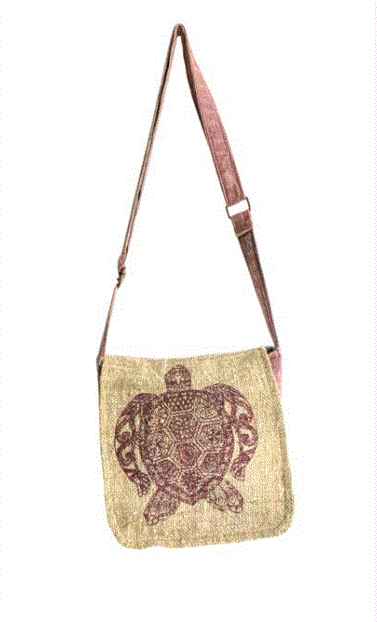 Hemp, Cotton Shoulder Crossbody Bag Front Flap With Turtle Screen Print