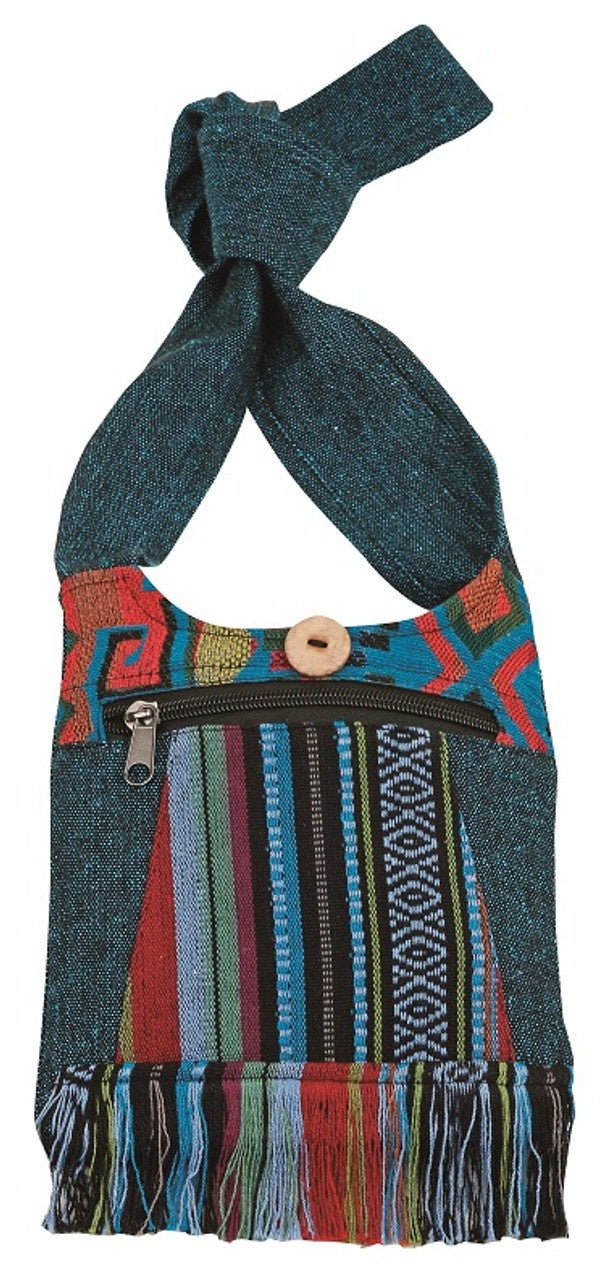 Small bag With front zip pocket and fringe. Beautiful mix of materials