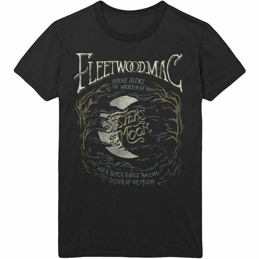 An official licensed Fleetwood Mac Unisex Tee featuring the 'Sisters Of The Moon' design motif. This high quality t-shirt design is available in the black colourway.