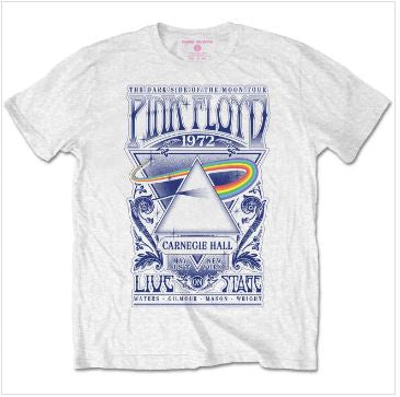 An official licensed Pink Floyd Unisex T-Shirt featuring the 'Carnegie Hall Poster' design motif. This high quality T-Shirt is available in a white colourway.