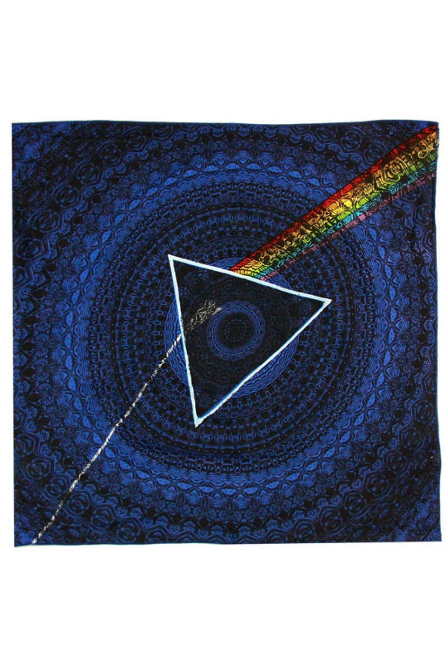 Official Pink Floyd Bandana encorporatess icons from the album The Dark Side of the Moon. Color Blue Approximately 22x22 inches 100% Cotton Made in India