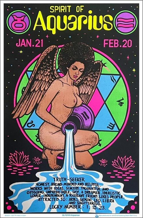 Aquarius (January 20 – February 18) Zodiac Sign Flocked Blacklight Poster 23" x 35"