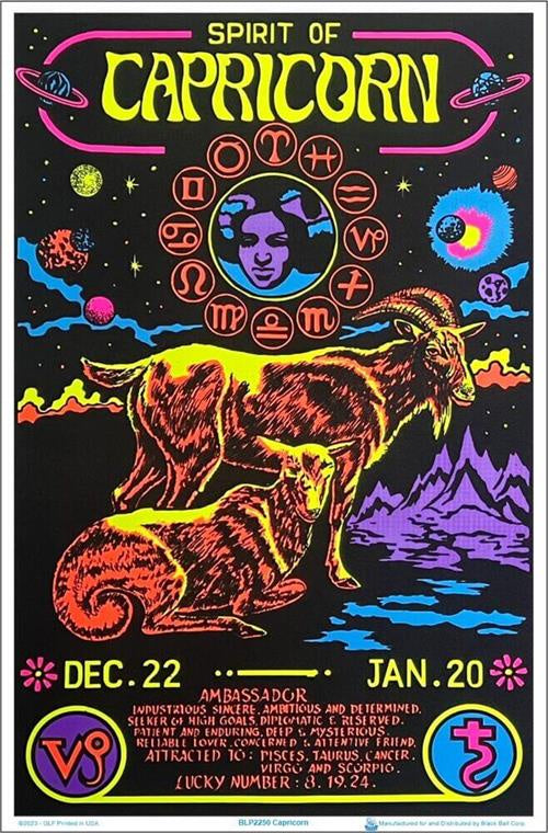 Capricorn (December 22 – January 19) Zodiac Sign Flocked Blacklight Poster 23" x 35"