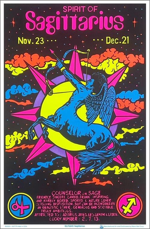 Sagittarius (November 22 – December 21) Zodiac Sign Flocked Blacklight Poster 23" x 35"