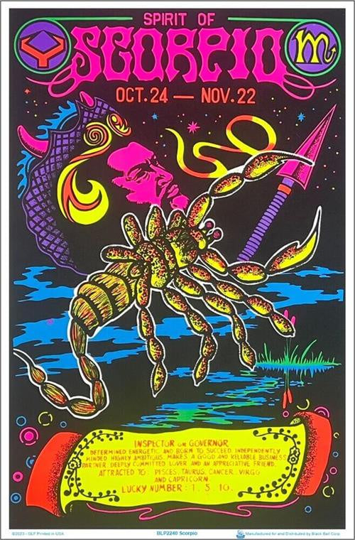Scorpio (October 23 – November 21) Zodiac Sign Flocked Blacklight Poster 23" x 35"