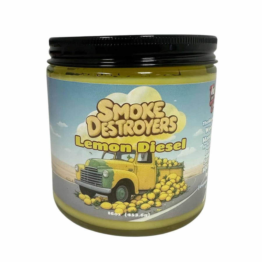 Smoke Destroyer Wood Wick Candle – 16oz Lemon Diesel