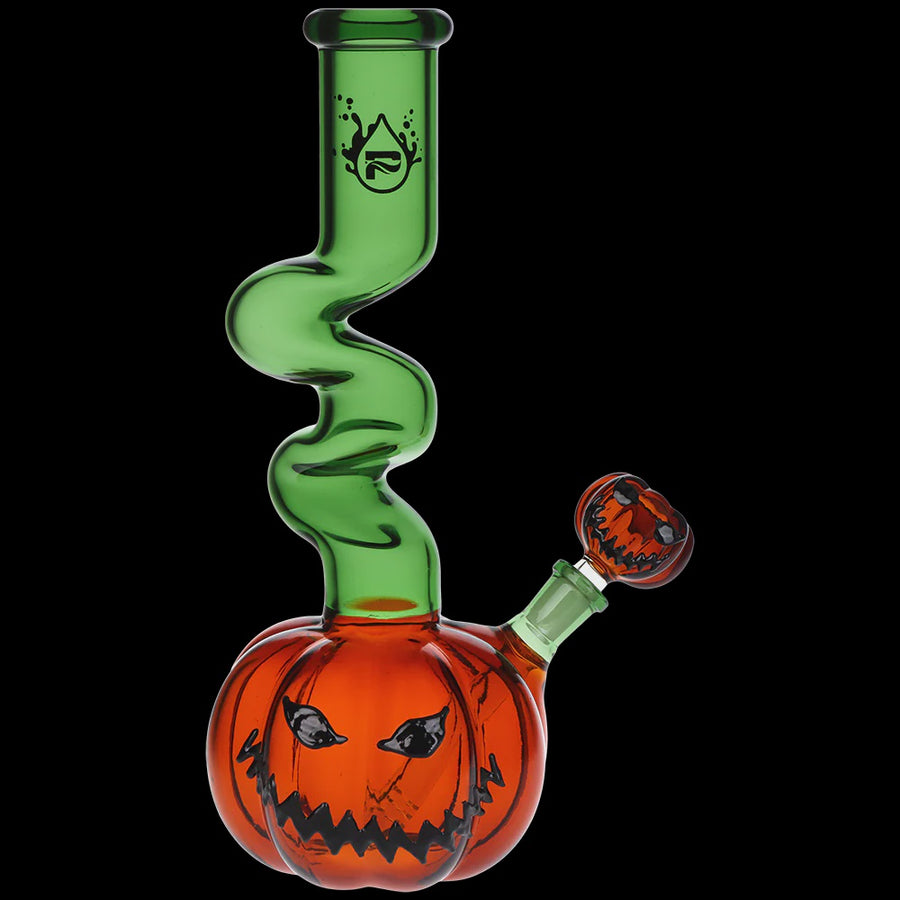 Put a spin on the spooky season with the Pulsar Wicked Twisty Jack-O-Lantern Bong! Made of quality borosilicate glass, this water pipe has an amber bubble base designed to resemble a Jack-O-Lantern. The fixed downstem has a slitted diffuser at the end for rapid water filtration. As you inhale, smoke meanders up the winding zig zag neck; this elongated shape allows more time for smoke to cool and prevents any splashback from the chamber. Each bong includes a matching Jack-O-Lantern herb slide with a 14mm joint connection.