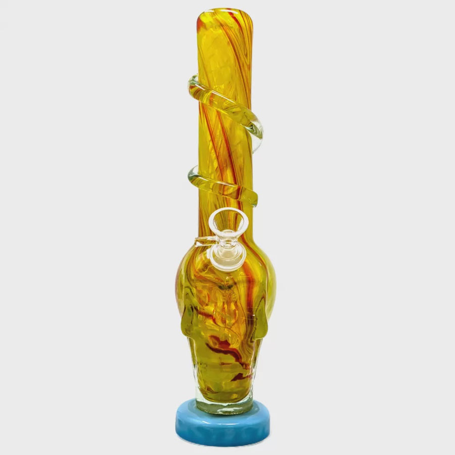 12" Wave Base Skull Shape Growing Spiral Soft Glass- Glass On Glass [JHSGG0028]