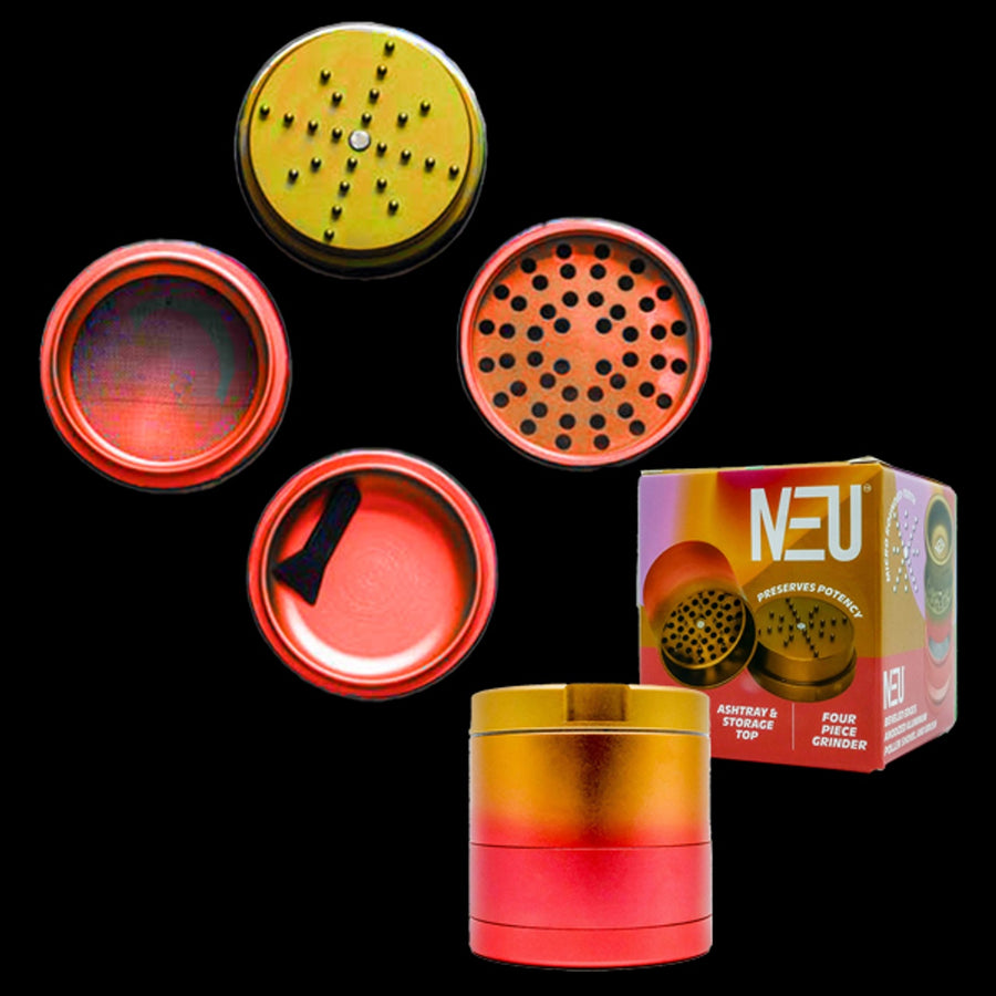Introducing the NEU Grinder — where precision meets utility in the world of herb grinding. Designed for the discerning enthusiast, the NEU Grinder is crafted from high-quality anodized aluminum, ensuring durability and a sleek, modern aesthetic. This four-piece grinder features innovative micro-rounded teeth, engineered to gently yet effectively grind herbs while preserving their integrity and potency. This unique grinding mechanism guarantees perfect consistency every time, enhancing your experience without compromising the herb’s natural qualities.