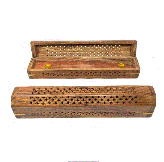 12" Carved Wood Coffin Incense Burner - With Filigree