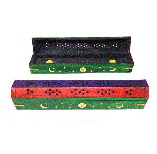 12" Color Wood Coffin Incense Burner - Multi Color 10836