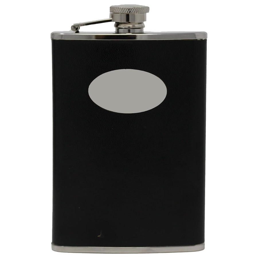 8 oz Black Smooth Leather Discrete Pocket Hip Alcohol Liquor Flask Made from 304 (18/8) Food Grade Stainless Steel