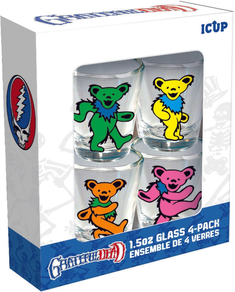 DRINKWARE DESIGNED FOR FUN & FUNCTIONALITY: This 4 piece set of Grateful Dead shot glasses is the ultimate item or gift for Grateful Dead fans. Each glass holds 1.5 ozs and features the iconic Dancing Bears. It's a perfect way to get the party started! Great for yourself or as white elephant and Holidays gifts. Adults will absolutely and proudly show their love with these Grateful Dead Shot Glasses. LOOKING FOR GRATEFUL DEAD GIFTS? This Grateful Dead 4 piece Shot Glass set is the ultimate gift for fans. It's perfect for gatherings, birthdays, holidays, adults will absolutely love receiving it as a gift. PREMIUM QUALITY YOU CAN TRUST: Our drinkware combines quality craftsmanship with a high dose of fun! 100% OFFICIALLY LICENSED GRATEFUL DEAD MERCHANDISE: Our Grateful Dead drinkware is designed by ICUP, officially licensed, and 100% authentic. It's the perfect piece of Grateful Dead collectible memorabilia to add to your collection.