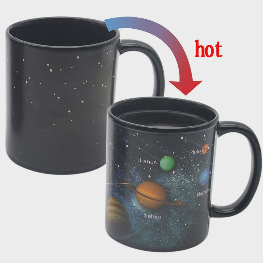 Watch in awe as a black mug transforms into a bright galactic scene with the addition of hot water. An excellent gift for children, teachers, astronomy lovers or science enthusiasts.