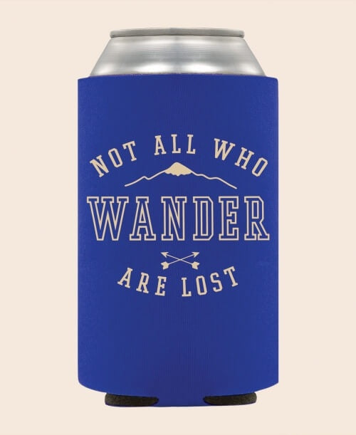 Let this Not All Who Wander Drink Coozie motivate you to live your dream! Featuring a Not All Who Wander message with nature designs on each side of coozie. Insulated with blue foam, perfect for your canned drink whatever it may be.