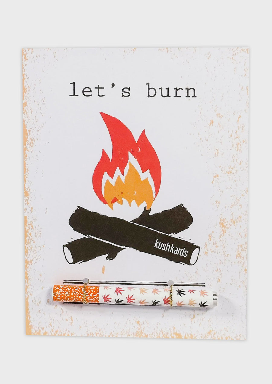 When I thought of what Colorado would be like before moving from NYC all I could think of was burning around a fire after a long hike! The creation of our classic "Let's Burn" Cannabis Greeting Card has a mix of warm tones and a campfire to make sure you always get lit! Write a message (or day and time) on the inside and gift this stoner card with your own pre-roll or with the custom one hitter.Â