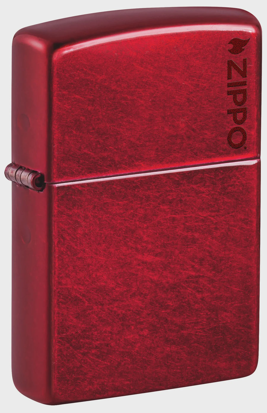 The enticing Candy Apple Red lighter features a bright, translucent finish that allows the lighter case's tumbled texture and metallic tones to shine through. This classic model features a Color Image Zippo logo for subtle contrast. Comes packaged in a gift box. For optimal performance fill with Zippo lighter fuel.