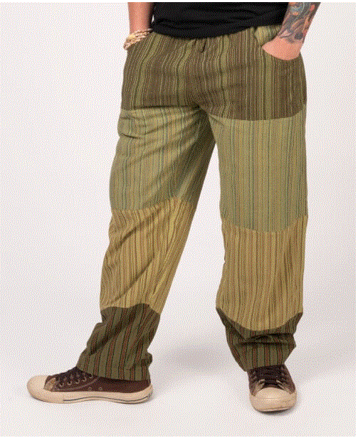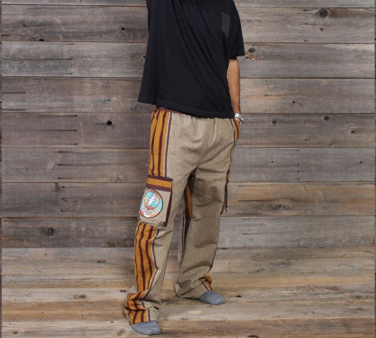 THIS OL' WAY PANTS Heavy Cotton Gherri + GD Print Patchwork Pants w/ Pockets. ANOTHER amazing up cycled item but this time using a mixture of custom Grateful Dead prints, mixed with an assortment of solid and striped cotton pieces.