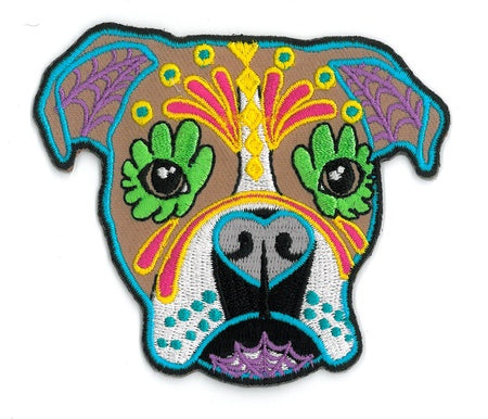Cali's Boxer embroidered patch. Incredible color and detail! Iron-on for easy, secure application. 3" x 3.5". Artist: Cali