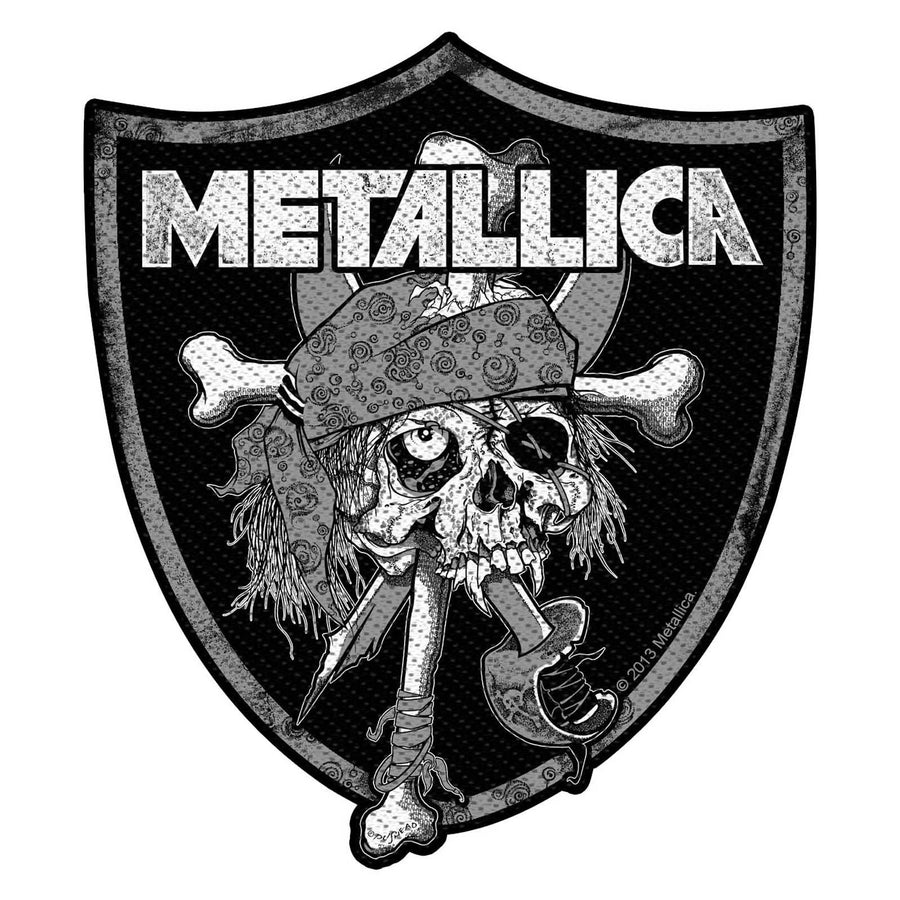 An official licensed Metallica Standard Patch featuring the 'Raiders Skull' design motif.