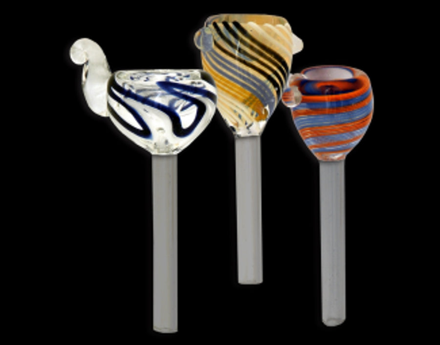 Classic 9mm pull slide for soft glass style water pipe. These come in assorted inside out blown glass designs, are fully worked and are approximately 4.25 inches long.