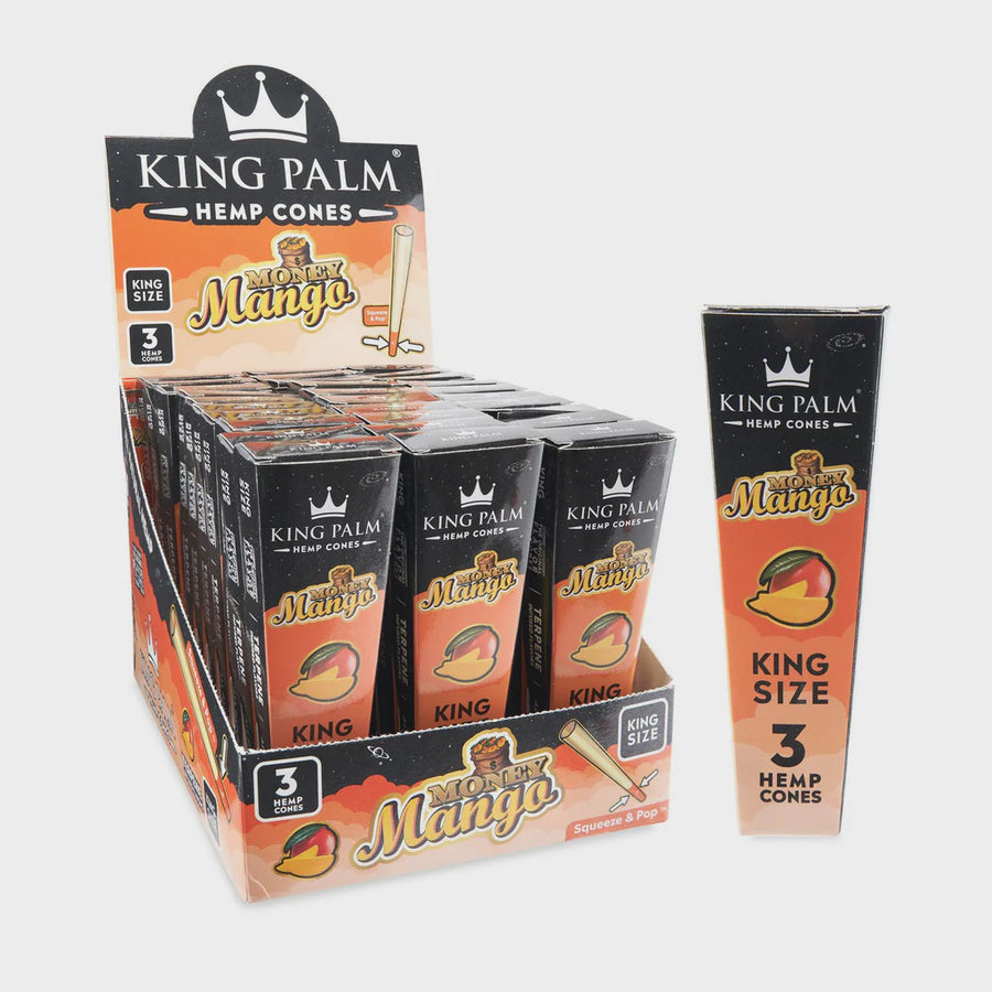 King Palm Hemp Cones are pre-rolled cones with a filter tip that features a flavor bead that gets popped to activate the flavor. These are king size cones made of natural hemp paper with a paper filter tip that has a flavor pearl tucked inside. Natural fruit terpenes are infused in the flavor pearl. Three cones come in each pack.Â