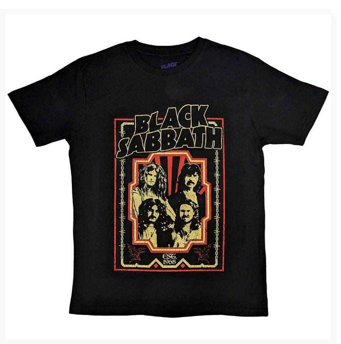 An official licensed Black Sabbath T-Shirt featuring the Est 1968 design motif.