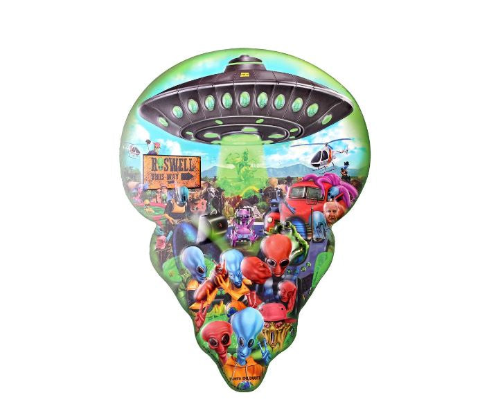 American Art Decor Distressed Roswell Alien Fest UFO Embossed Shaped Metal Sign - 18" x 13.75"