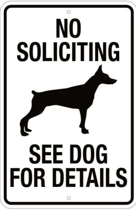 No Soliciting See Dog Tin Sign