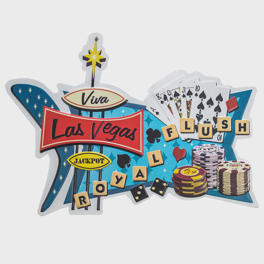 Viva Las Vegas Royal Flush Embossed Metal Sign