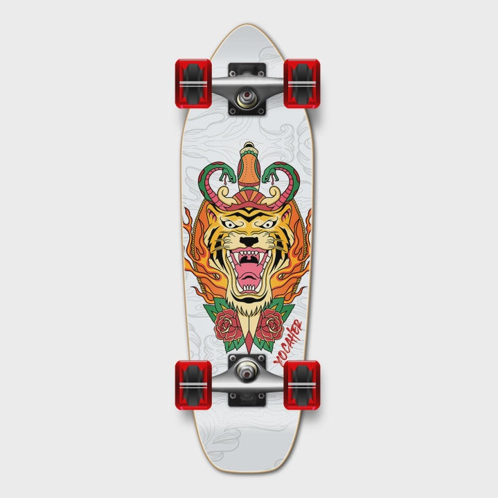 Yocaher Graphic Complete Mini Cruiser Skateboard Longboard - Flaming Tiger