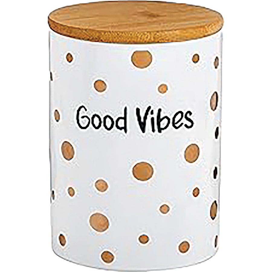 Good Vibes Gold Polka Dots Deluxe Canister Stash Jar