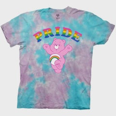 This lightweight tie dye t-shirt is the perfect tee to rock at Pride or any day of the year. Featuring a graphic of Cheer Bear below the banner of rainbow text "Pride", direct from our line of Officially Licensed Care Bear merch!