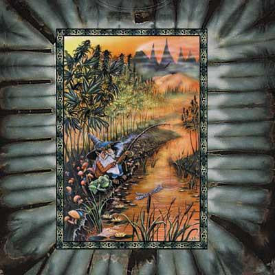 This Happylife Productions tie dyed w/print features artwork by Mike DuBois on a heavyweight100% cotton shirt.