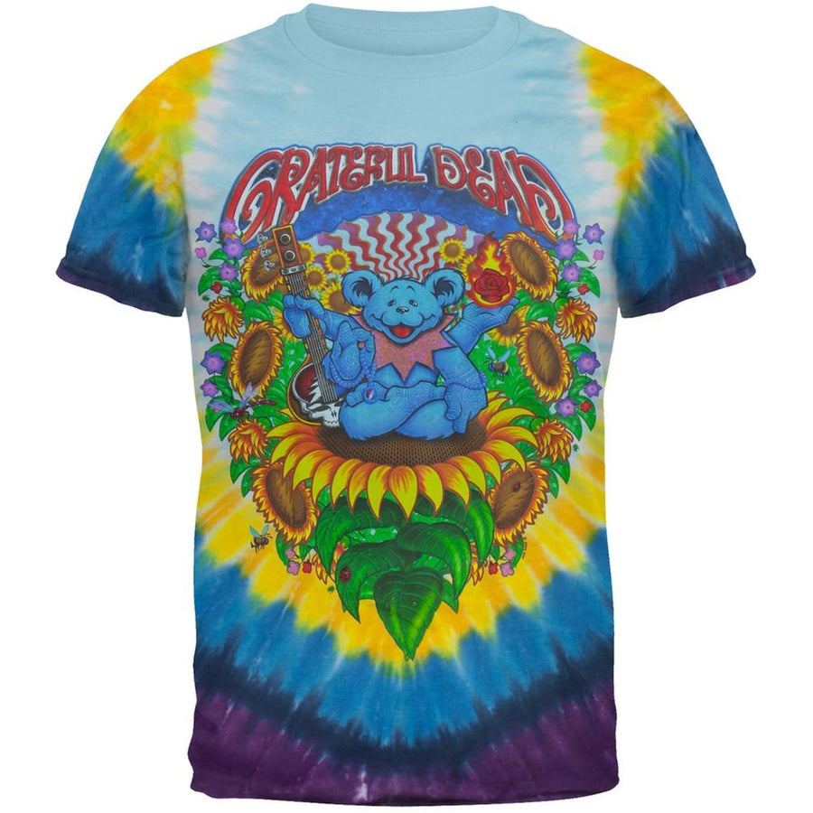 Another mind-bending tie-dye for the "Heart of Gold Band", The Grateful Dead. The dancing bear and tie-dye are synonymous with The Dead, as is the explosion of sound and color. This Grateful Dead T-shirt will move you brightly!