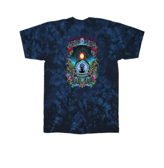 This Happylife Productions tie dyed w/print features artwork by Mike DuBois on a heavyweight 100% cotton shirt.