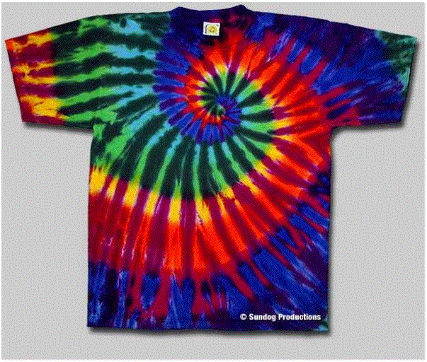 Assorted tie dyes will vary as no two tie dyes are alike.