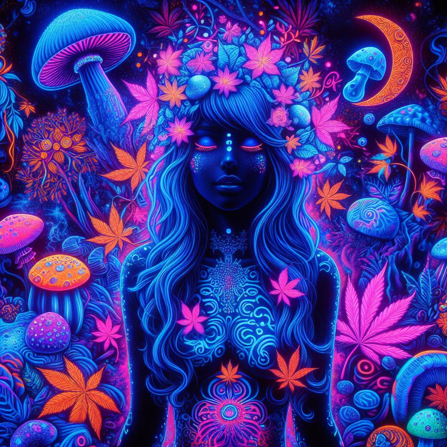 Beauty & Shrooms Blacklight UV Tapestry 50'' x 60''