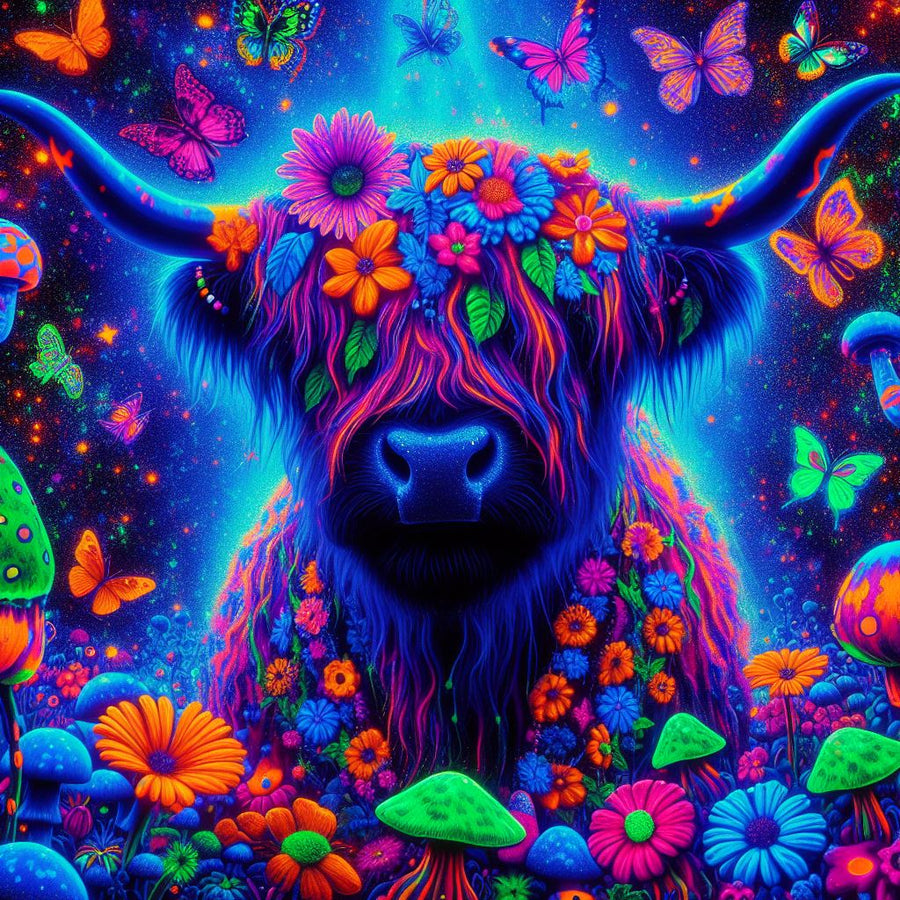 Highland Cow Blacklight UV Tapestry 28'' x 37''(poster size)