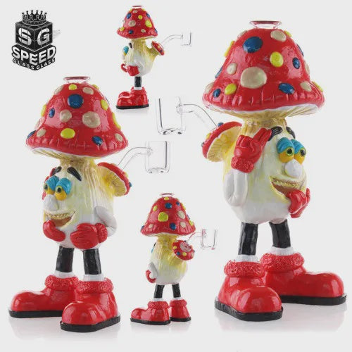 7" Ceramic Hand Painted Water Pipe - Fun Guy Mushroom