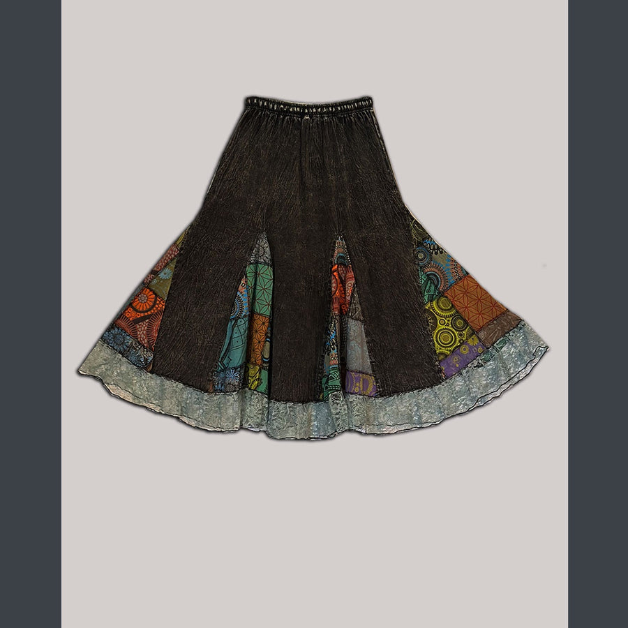 DREAMCATCHER SKIRT Cotton Enzyme Wash & Patchwork Skirt w/ Elastic Drawstring Waist Skirt & Lace Trim Detail