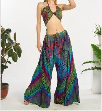 Rayon Tie Dye Flare Wide-Leg Pants KT-1594